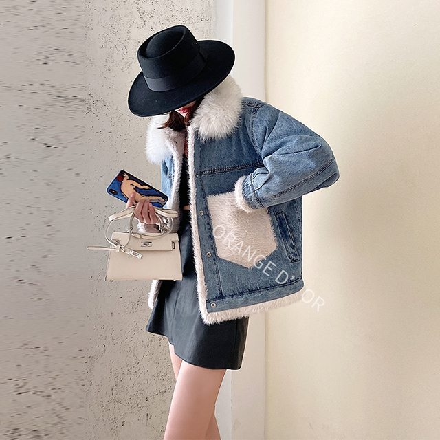 展品關(guān)鍵詞短款、牛仔、外套、拼接、毛領(lǐng)