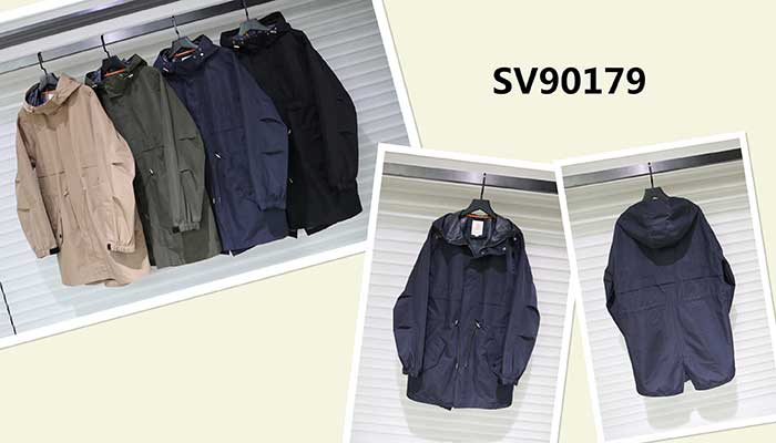 中長款樣式,雙側口袋設計,抽繩收腰設計,連帽款,簡潔時尚,適合南美及歐美商超。